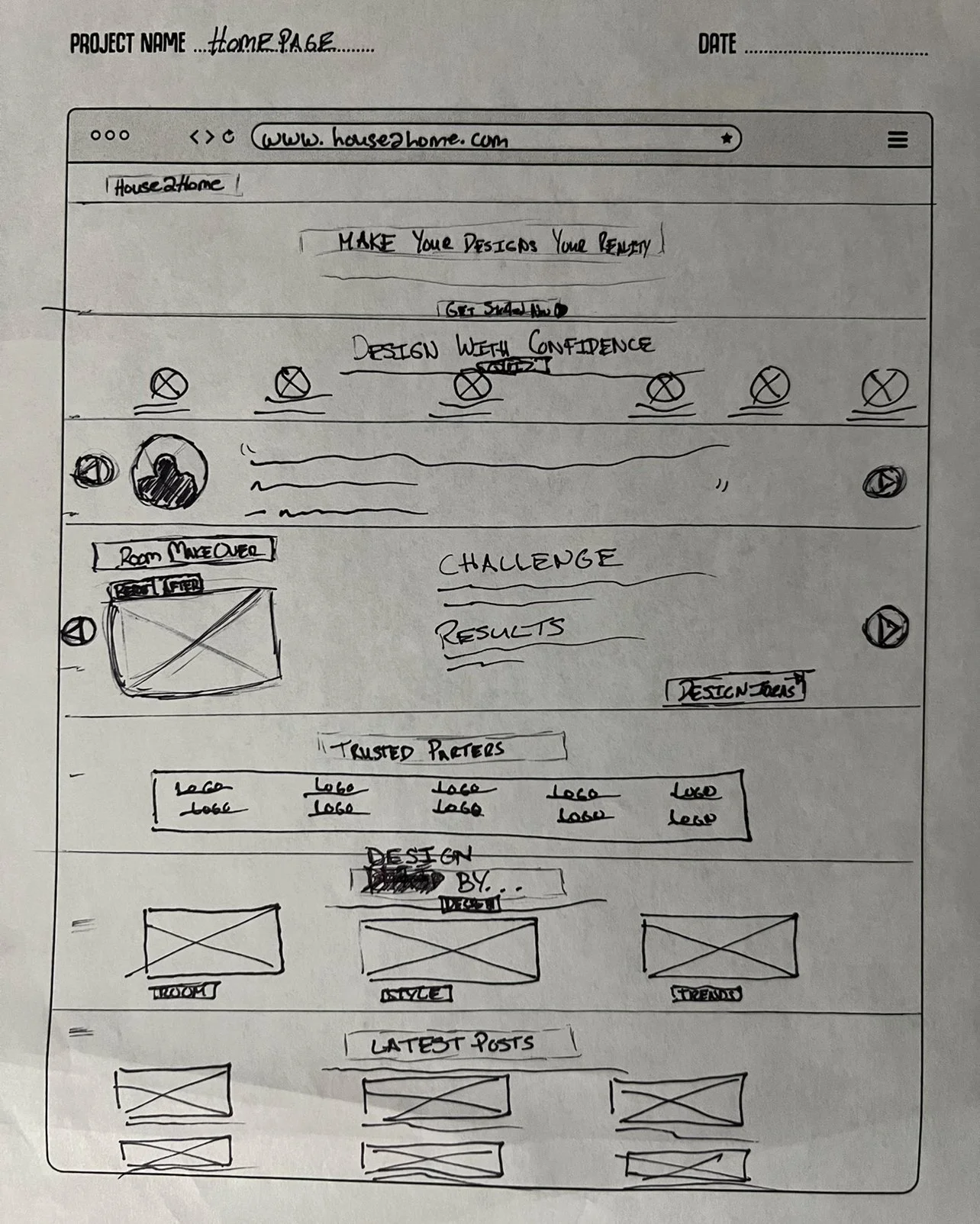 Storyboarding puts in perspective the journey or flow my shopper will take on this site. Have I offered shoppers enough to help them confidently shop products for their new home? I thought by giving the user control, they could read the latest posts on home decor in our blogs section, explore different styles on interior design from our style quiz, and gain inspiration by viewing decor designs by the room, by the style, or by the latest trend. Finally, allowing them to connect with expert designers who can assist if they are still unsure. I believe this site gives the user interior design and decor knowledge to allow the new-move shopper to confidently complete their purchase.